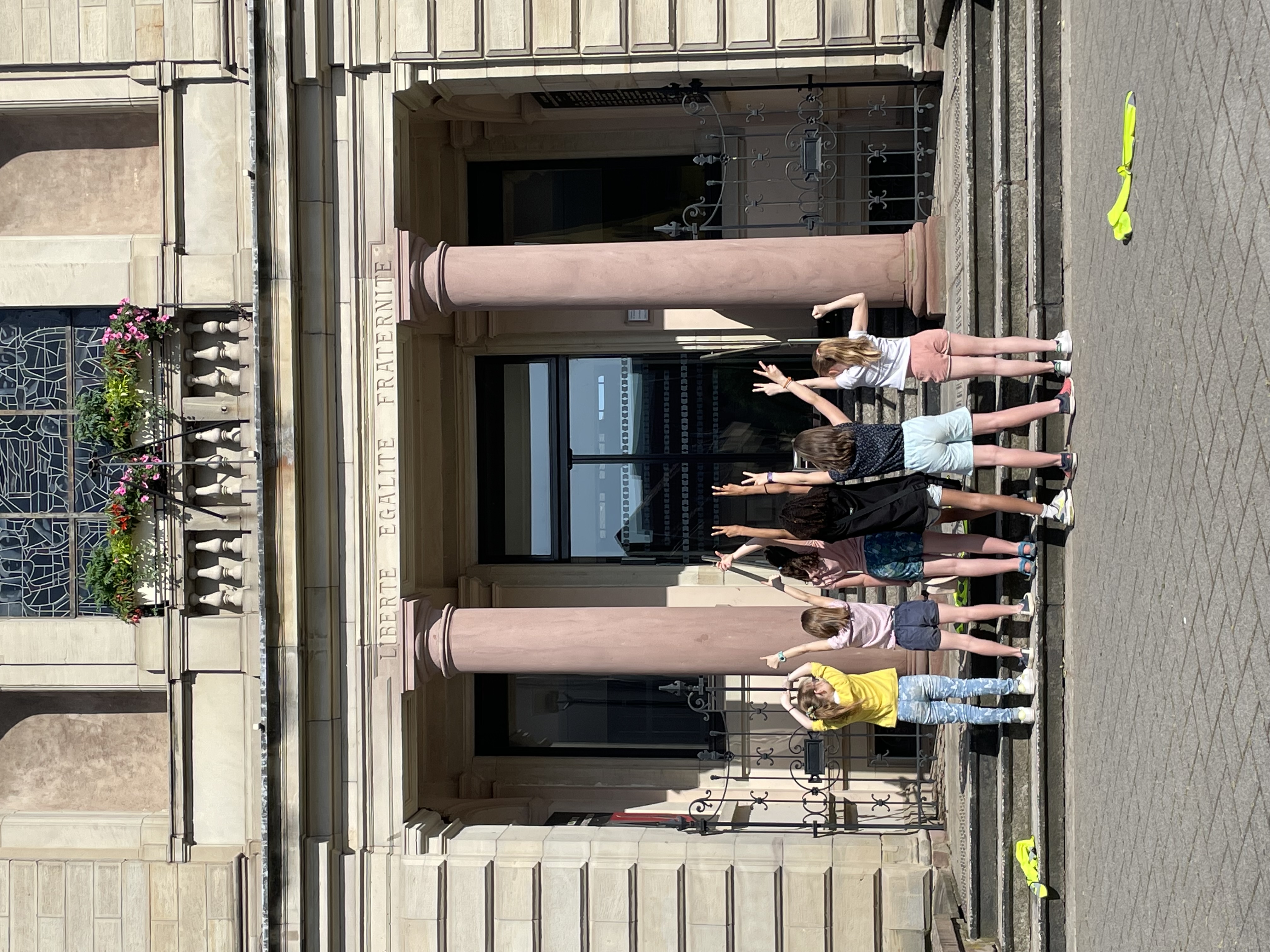Ce mardi 30 mai notre animatrice Anastasia a emmené 6 enfants qui participent à son projet, en sortie. Elles ont pris le tram toutes ensembles pour se rendre au centre-ville d’Illkirch-Graffenstaden. Cette sortie avait une raison d’être : photographier le groupe devant les lieux symboliques de la ville, et ce afin d’illustrer leurs jeux de Monopoly « Illkirch » qu’ils sont entrain de créer.