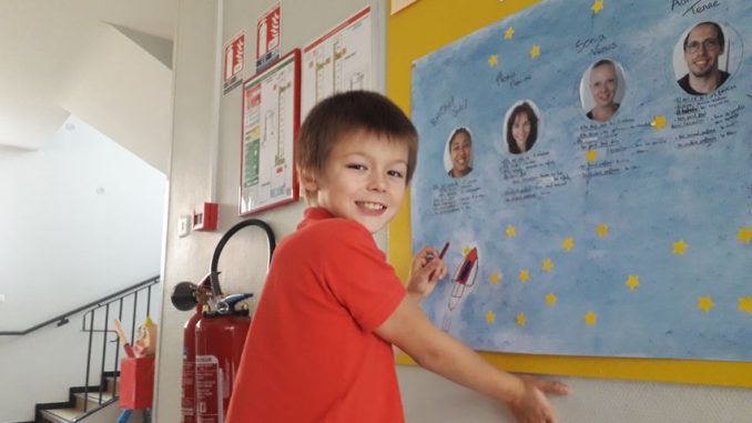 L’équipe et trois enfants volontaires ont réalisé le trombinoscope de l’équipe périscolaire. Mais Alban, huit ans, élève en CE2, était tout particulièrement intéressé et impliqué dans la réalisation de ce support. Voulant le remercier et valoriser son travail, j’ai eu l’idée de l’interviewer à mon tour. Il a découvert ce qu’était une « interview » pour la première fois en faisant le trombinoscope.