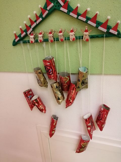 Au périscolaire nous avons aussi réalisé des calendriers de l’Avent. Chaque groupe a son calendrier avec ses propres cadeaux (Blagues, devinettes ou actions à réaliser). De belles actions dans l’humour et la bienveillance, qui rajoute un petite touche en plus lors des rassemblements.