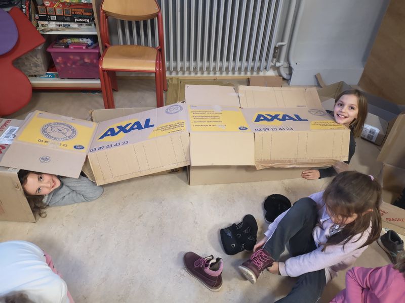 Amine et Aurelio ne trouvaient pas toujours leur compte dans les activités proposées et cela nous fait plaisir de les voir si investis dans leur propre projet de mascotte du périscolaire. Reste à voir quelle entité leur carton deviendra. Nous serons ravis de leur fournir de quoi améliorer leur œuvre. En attendant les photos ont étés interdites tant que le travail est en cours.