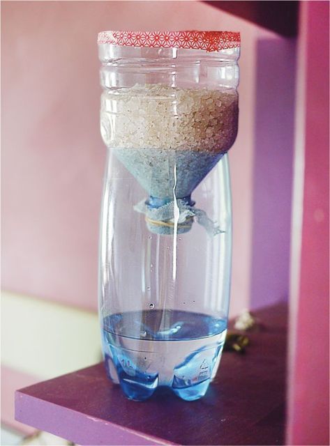 Ci-dessous un déshumidificateur. Objet destiné à absorber l’humidité d’une pièce. Les enfants ont pu à leur tour en concevoir un avec des bouteilles en plastiques, des gazes, des élastiques, du gros sel et un peu de décoration.