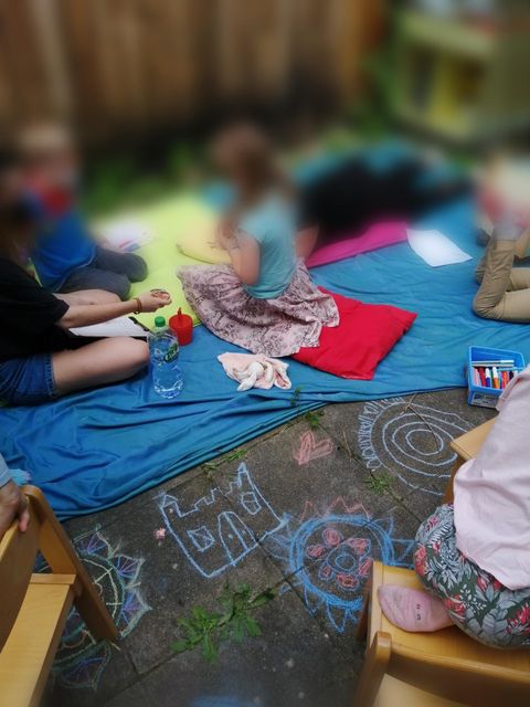 Cette fois ci, avec le soleil, les enfants ont pu profiter de leur petite terrasse pour partager un petit moment de douceur entre jeux, histoire, musique et petit dessin !