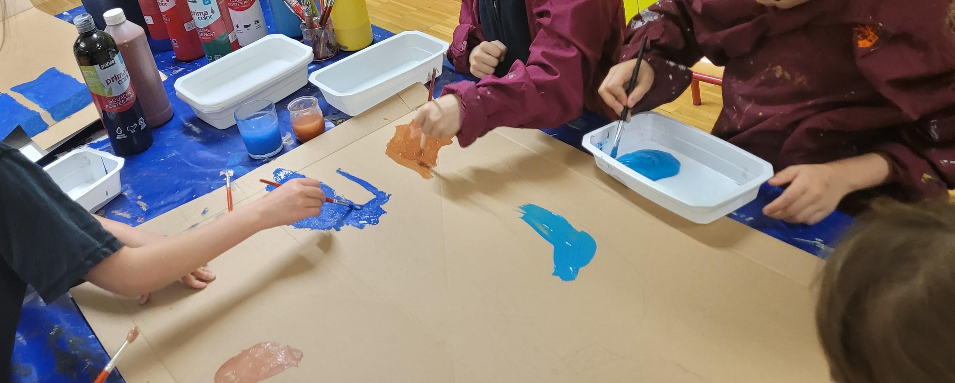 Pendant que les rires résonnaient grâce à cette pâte à modeler, un autre groupe s’activait pour peindre une mascotte, un chat fort étrange qui accueillera les parents dans un futur proche et les invitera à passer un bon moment de partage, et de rigolade avec les enfants.