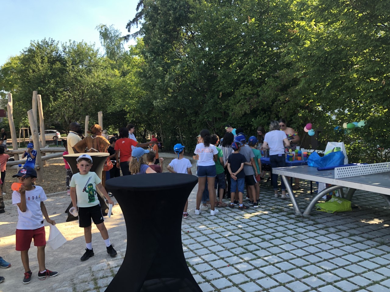 Le périscolaire élémentaire de l’école Lixenbuhl a eu le plaisir de clôturer l’année scolaire en présence des familles. Nous avons mis en place plusieurs stands de jeux comme le mölkky, la pétanque et le passe-trappe auquel les familles et les enfants pouvaient participer. Les parents ont eu le courage d’affronter leurs enfants au dodgeball et au basketball. Malgré l’entrainement intensif des enfants du périscolaire, les parents ont remporté le défi. Après l’effort, le réconfort ! Un buffet garni par le périscolaire et les familles était disponible sous les arbres.