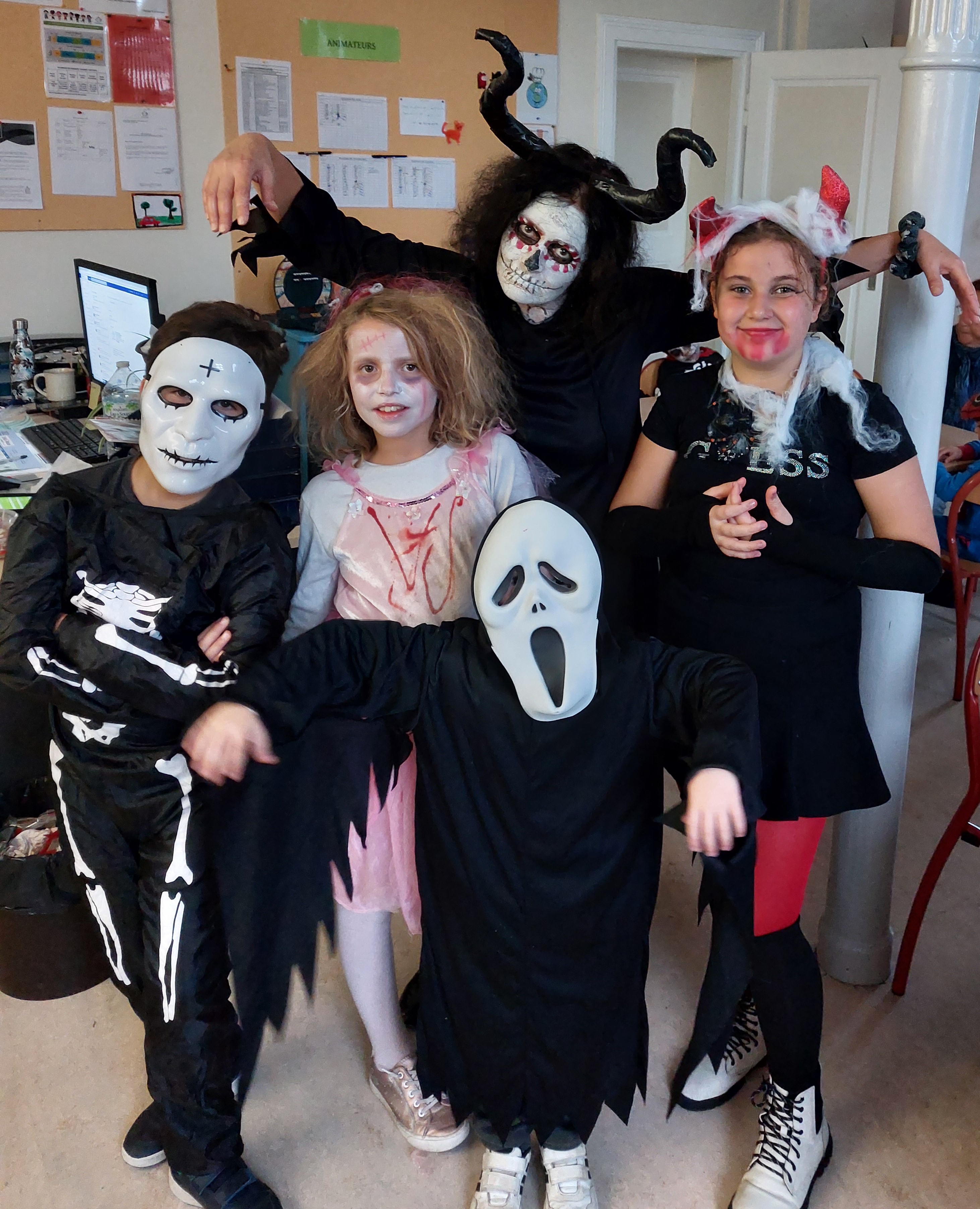 Pour la dernière soirée avant les vacances d’automne, tout le périscolaire a fait la fête sur le thème d’Halloween. Pour l’occasion, nous nous sommes tous regroupés, maternelles et élémentaires, dans la salle périscolaire pour une soirée conviviale et festive.