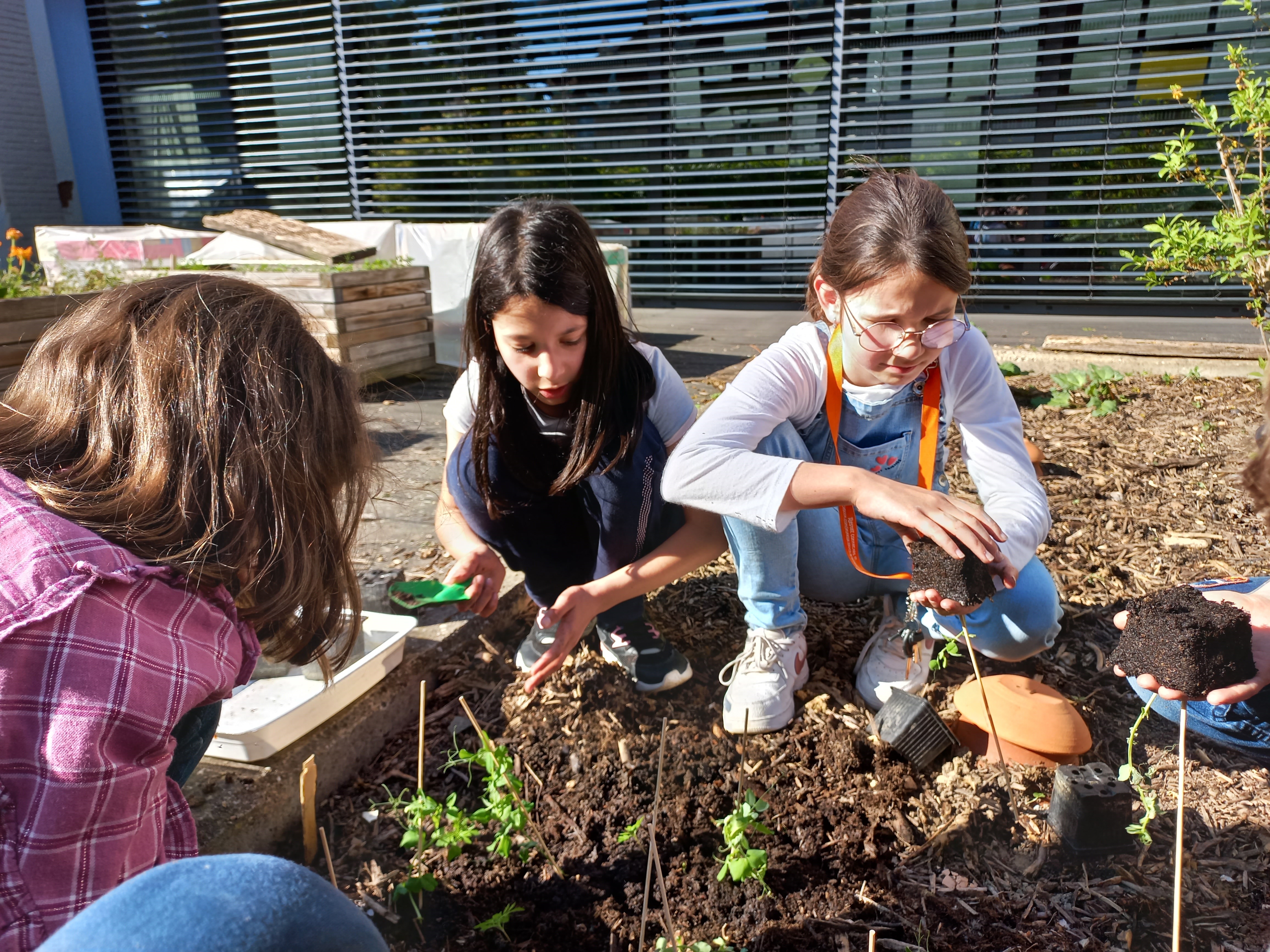 Après avoir récolté les premiers radis et les avoir dégustés, les enfants ont planté la plupart des semis : tomates, courgettes, choux-fleurs et fleurs.