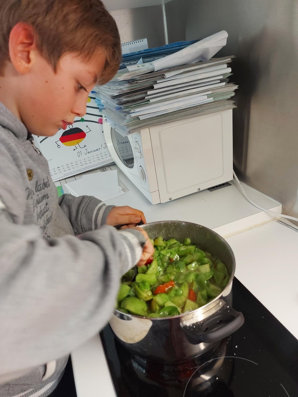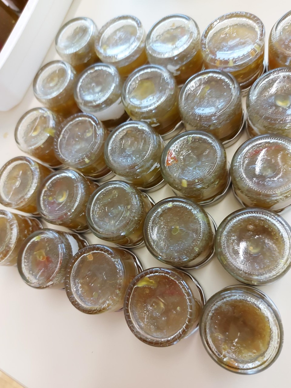 Et, avec les tomates vertes, nous avons fait des pots de confitures de tomates vertes.