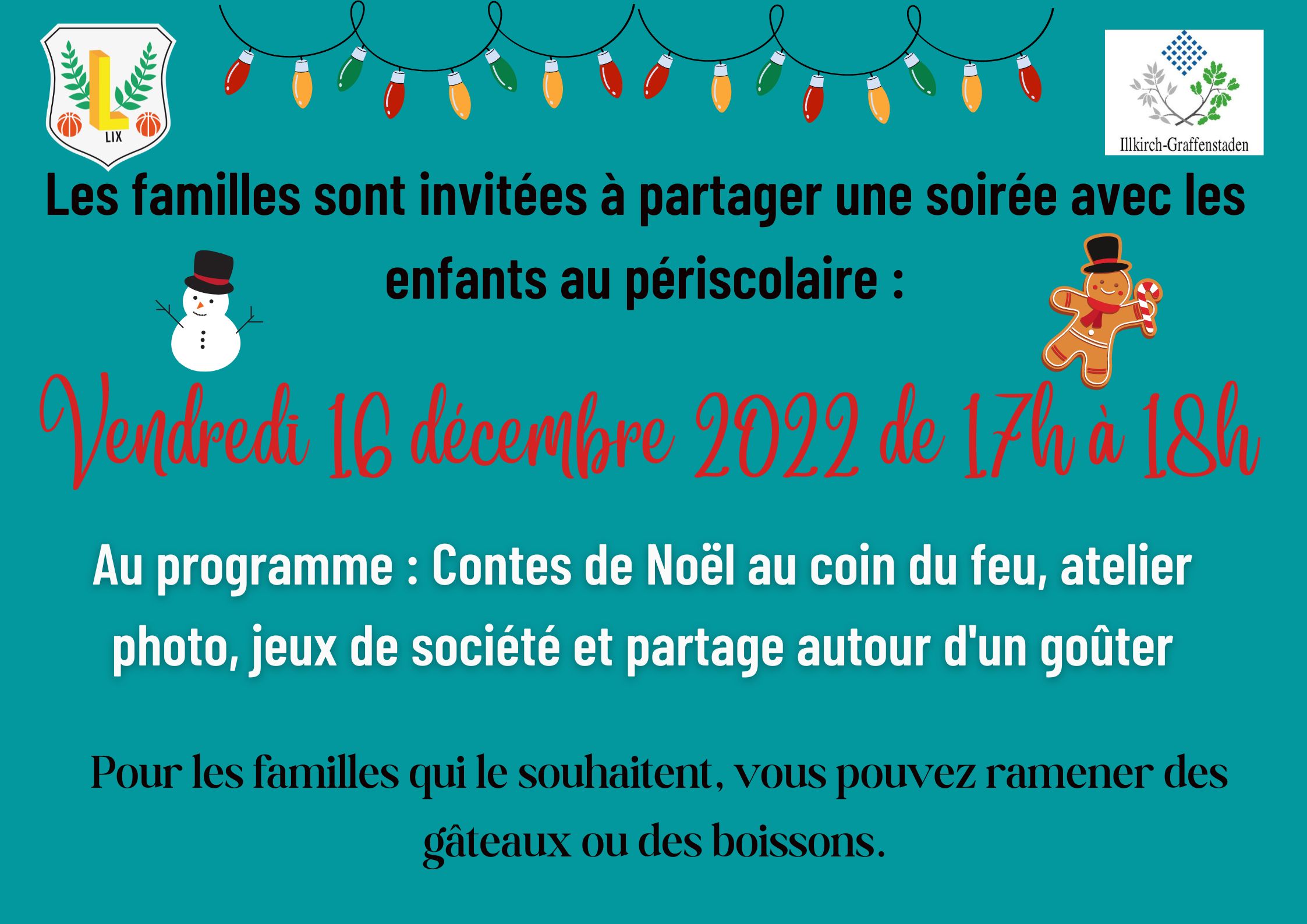 Les familles sont invitées à participer à cette soirée, le vendredi 16 décembre 2022, de 17h à 18h.