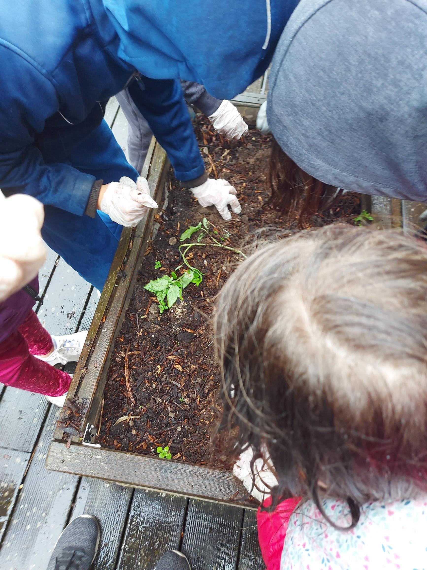 Dans la joie et la bonne humeur, l’équipe a débuté la plantation en avril. Les bacs sont alimentés par une cuve de récupération d’eau. Cela permet notamment de limité la consommation d’eau tout au long du projet. Un système d’arrosage automatique est en construction afin de continuer l’arrosage le week-end !!!