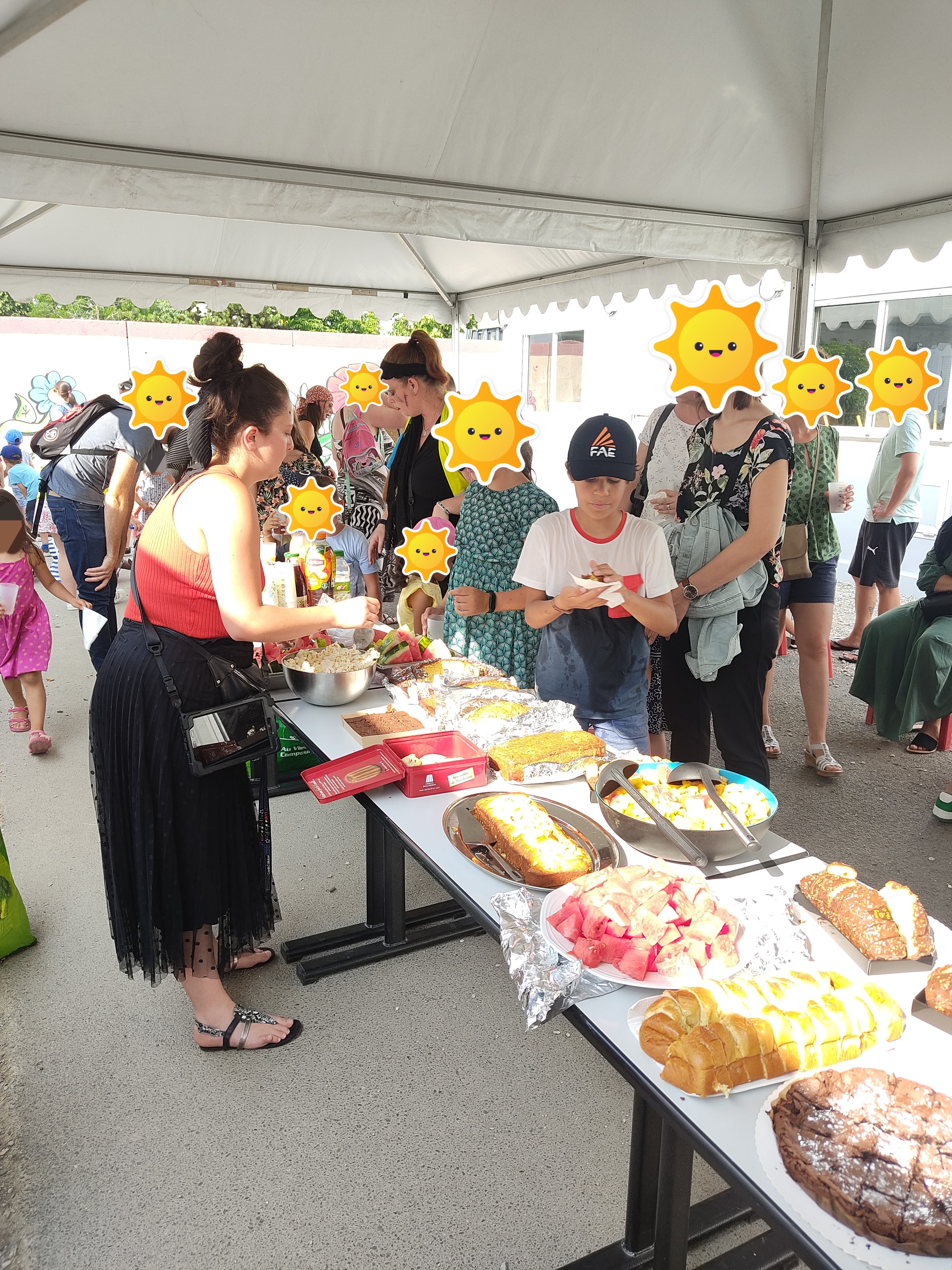 Déjà , nous souhaiterions remercier toutes les familles pour leur implication dans la préparation du buffet : gâteau, boissons… tellement de bonnes choses qui ont permis à vos enfants, les animateurs, ATSEM et vous-même, de vous régaler. Merci également aux parents qui nous ont aidé au service du buffet.