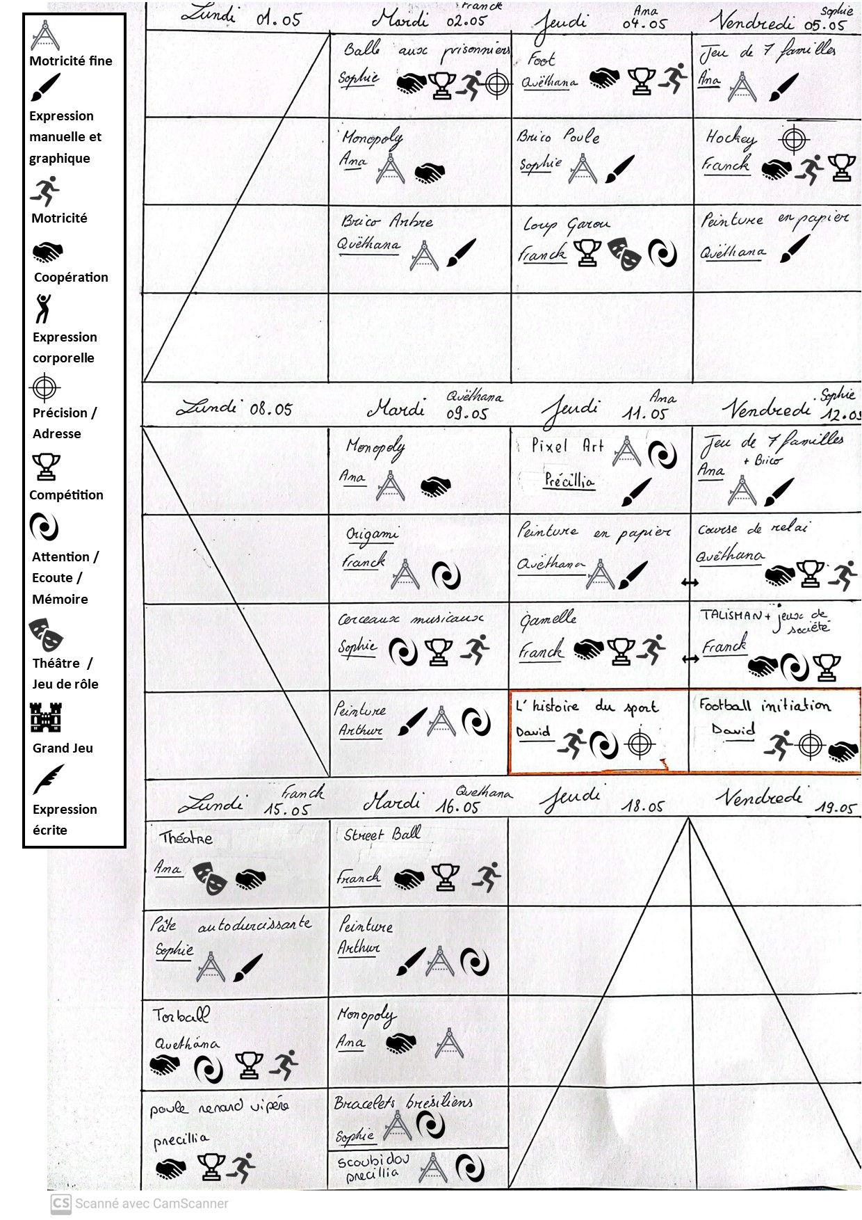 Découvrez ci-dessous le programme d’activité du mois de mai au périscolaire de l’école élémentaire des Vergers.