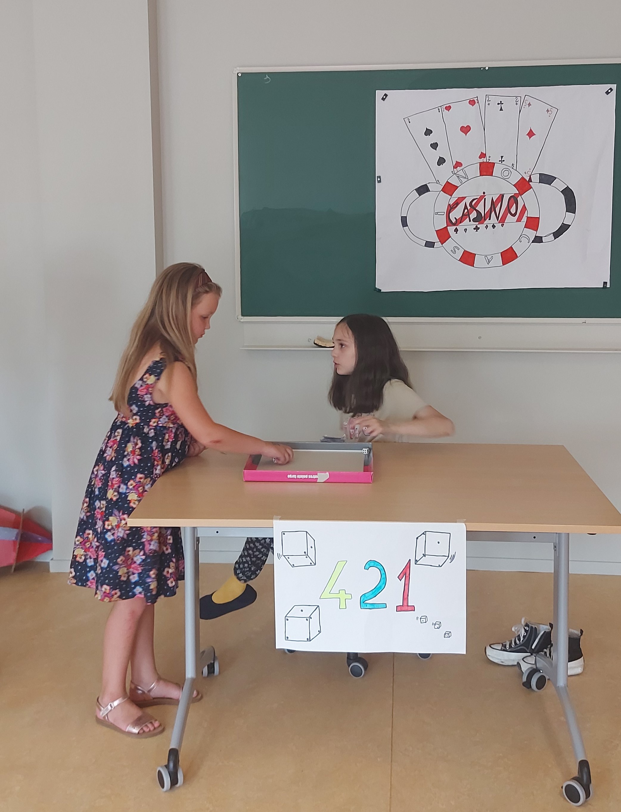 A l’occasion de notre dernier grand jeu, nous avons proposé la deuxième édition de notre Casino, car c’est un grand jeu qui avait beaucoup plu l’an passé aux enfants. Cette fois ci, nous avons proposé 8 ateliers qui étaient entièrement menés par un groupe d’enfants volontaires en CM2.