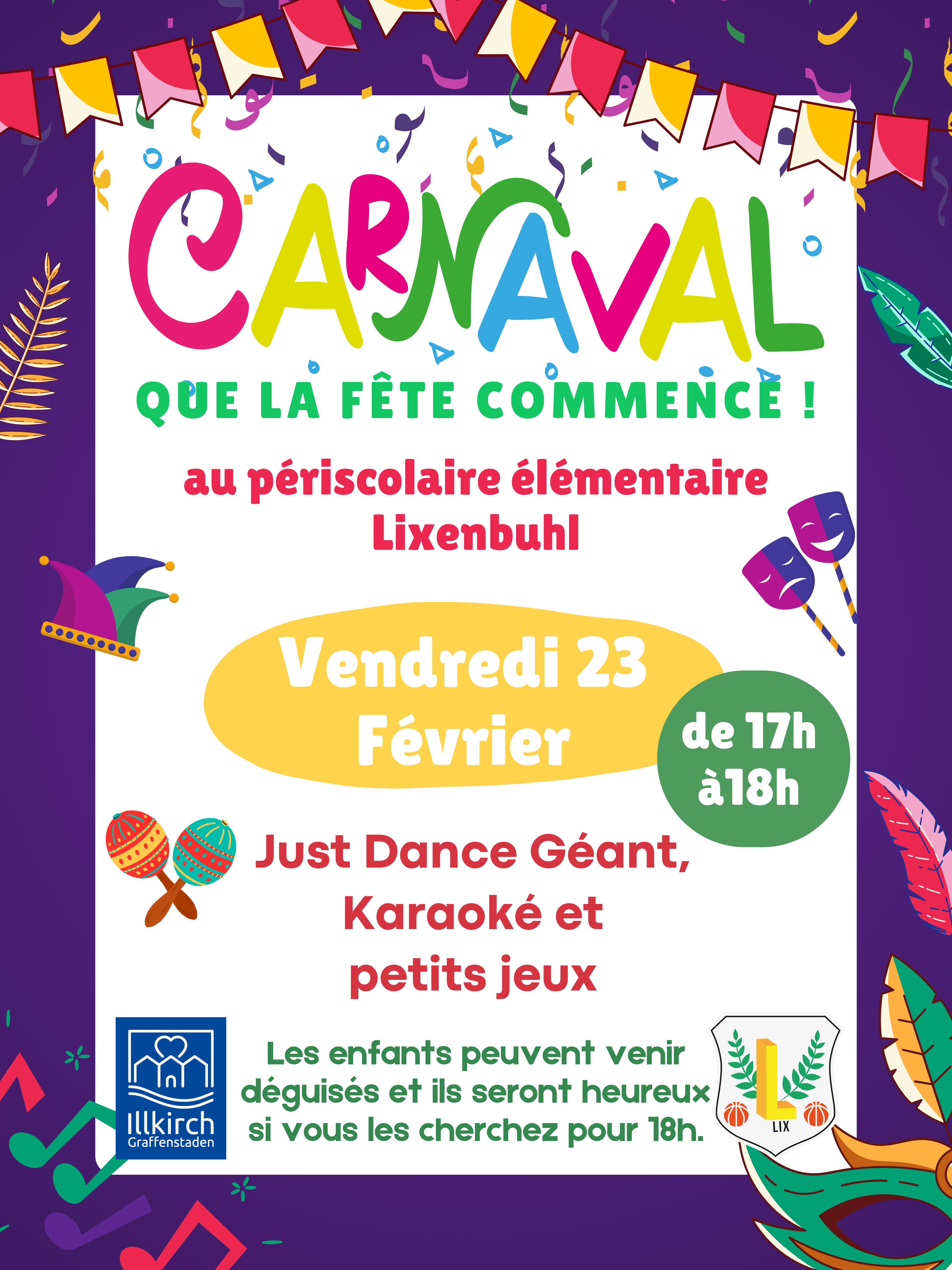 Le vendredi 23 février, le dernier jour avant les vacances d’hiver, le périscolaire élémentaire Lixenbuhl a fêté Carnaval avec les enfants. Pour l’occasion, tout le monde avait mis son plus beau déguisement.