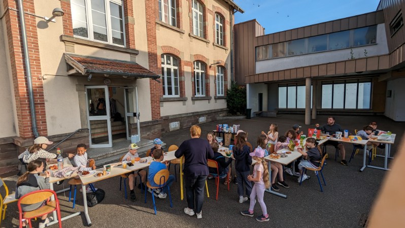 L’équipe périscolaire du matin a eu l’idée d’organiser un moment convivial sous la forme d’un petit déjeuner.