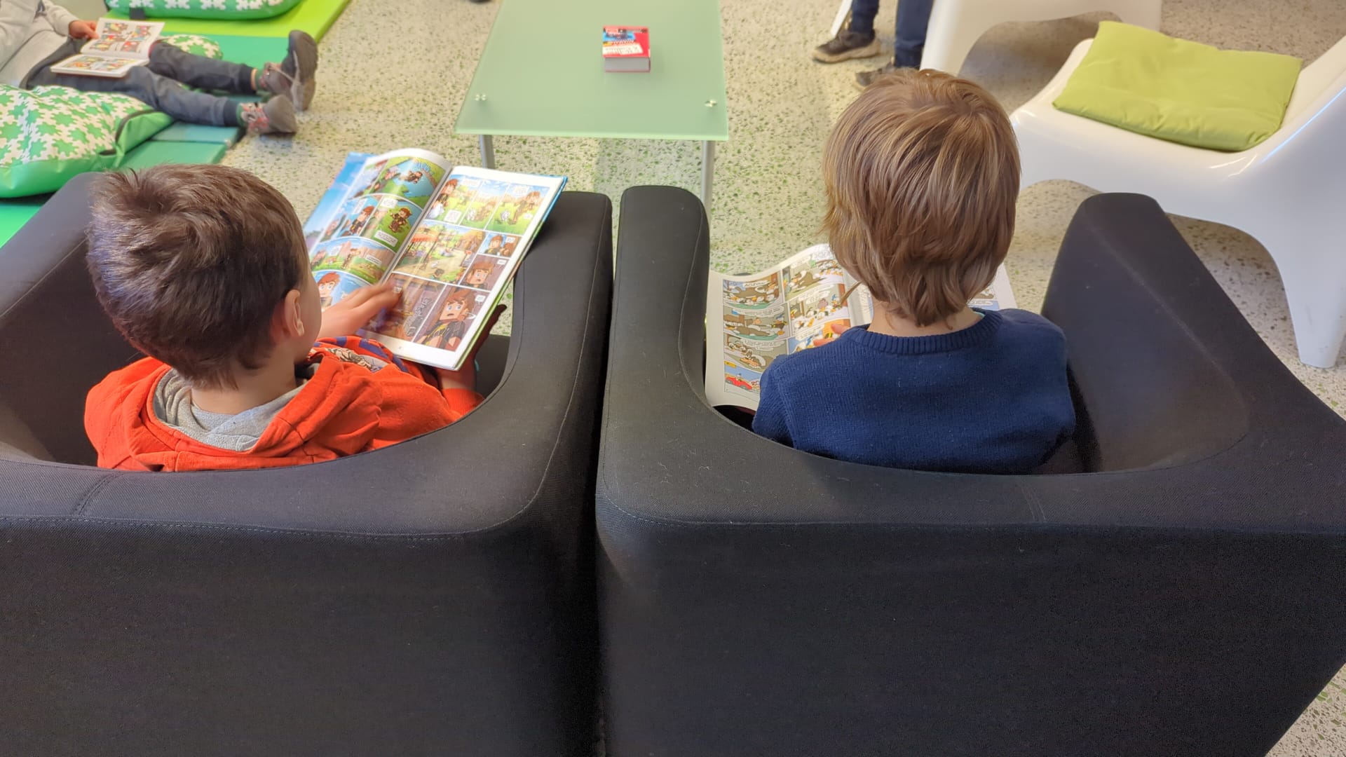 Lors d’un accueil du soir, un groupe d’enfants a eu la chance de profiter d’une sortie à la médiathèque : lecture au calme sur les canapés ou les tapis, ambiance détendue, jeux de société… Tous ont savouré ce moment apaisant, loin du tumulte de la journée. Un temps de découverte et de plaisir partagé qui a été très apprécié par les enfants.